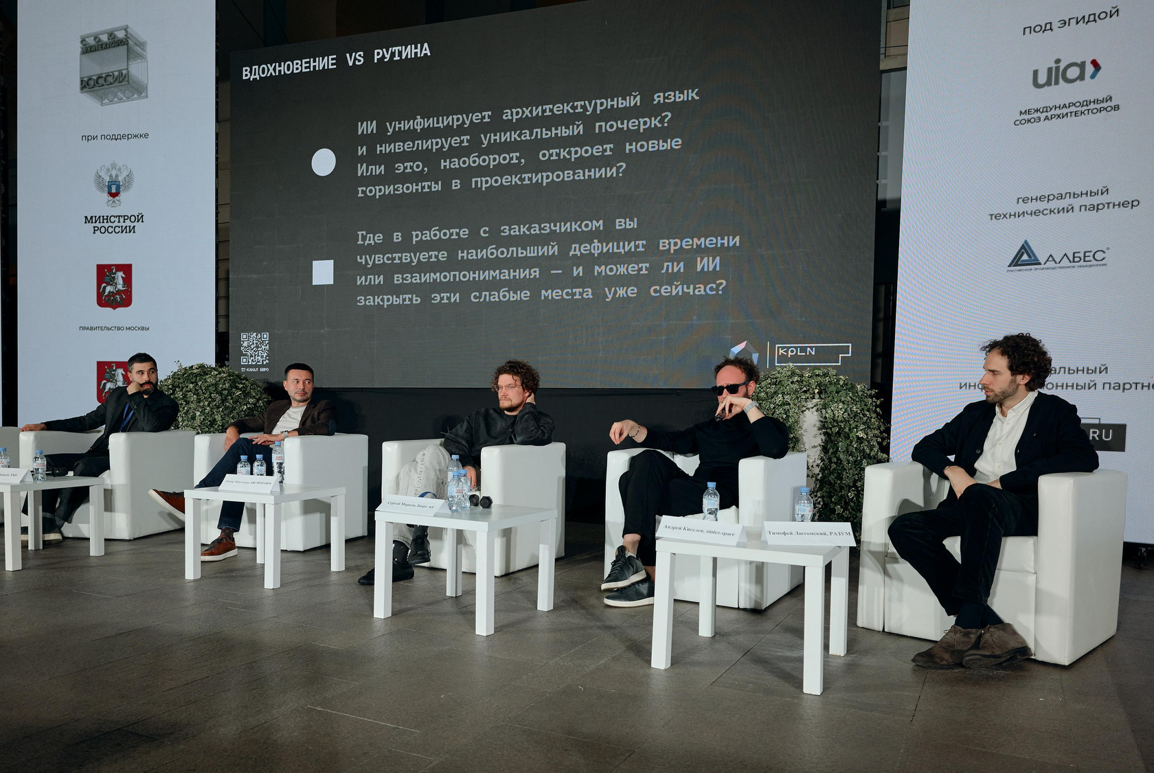 Дискуссия «ИИ-соавтор: делегируем мы рутину или вдохновение?» была организована на фестивале Зодчество архитектурным бюро KPLN. Модератором выступила Гюльнара Федосеева, архитектор и BIM-координатор бюро. Помимо KPLN, в разговоре участвовали представители IND, Бюро А4, sintez.space, ARCHINFORM, а также Андрей Киселев из ИОН РАНХиГС Тимофей Лютомский из компании РАЗУМ.